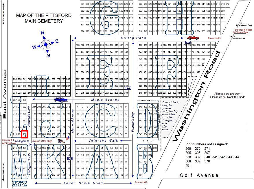 NOTE: In the Main Cemetery, you will find the May headstones in: Area L - Lot 179 as shown on the map below.