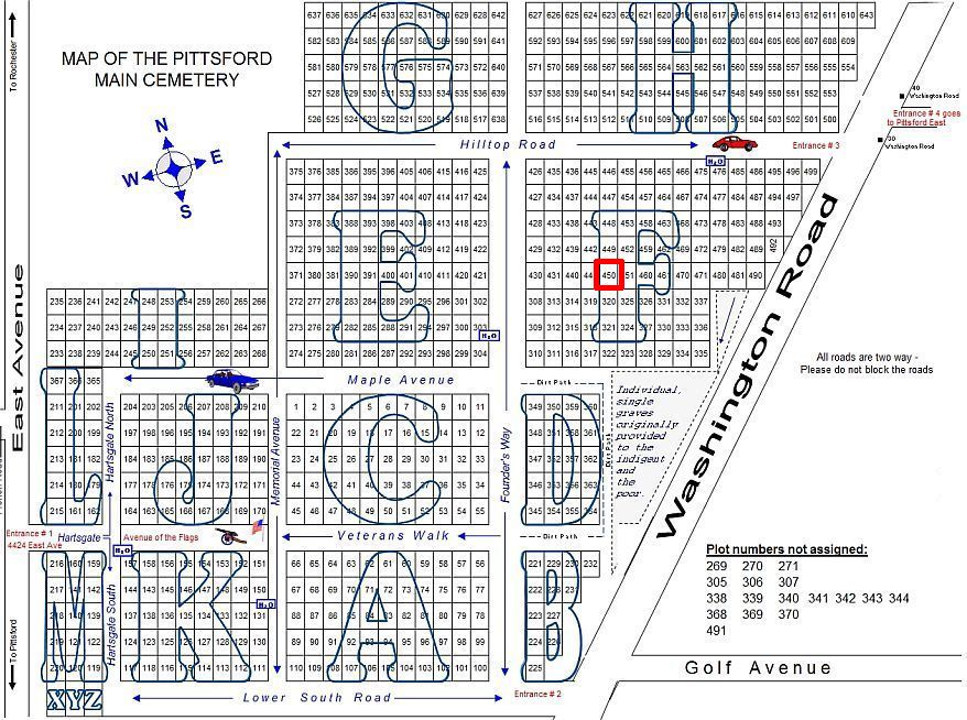 NOTE: In the Main Cemetery, you will find the Poulton headstone in: Area F - Lot 450 as shown on the map below.